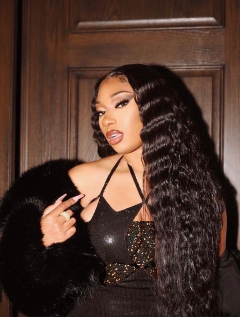 The Item: Hip Hop queen and Grammy award winner Megan Thee Stallion Wearing Adrienne Landau Fall 2022! The sassy siren was spotted by fans in her designer frock in a series of photos posted on social media platform, Instagram.